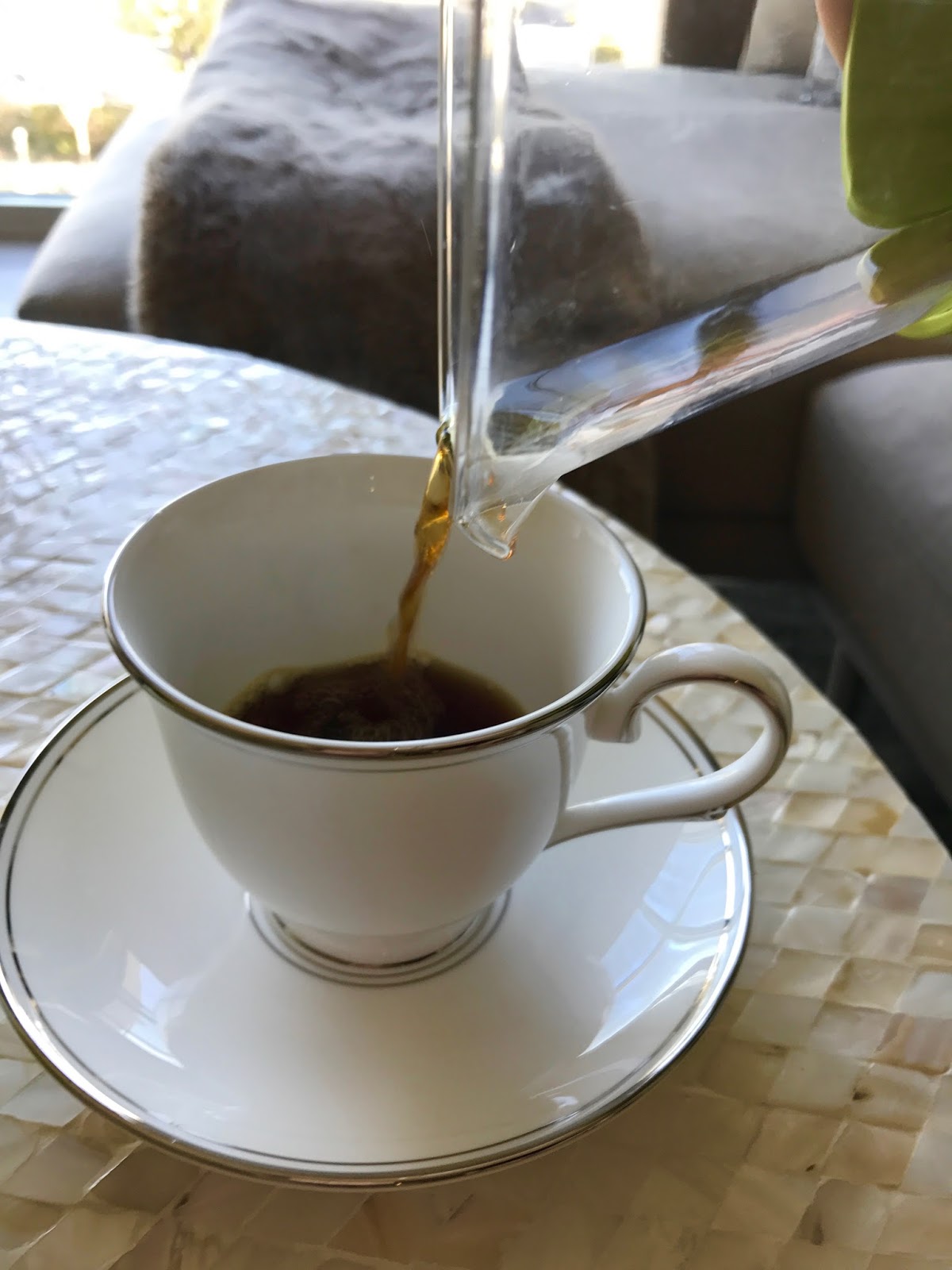Step 2: Boil water. If you have a thermometer, ideally, you want to get the water between 195 and 205o Fahrenheit. Once the water is boiling, pour a small amount into the pour over and swirl it around to heat up the glass. Once warm, pour the warm water into your cups to heat up the cup while you brew your coffee.