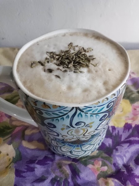 4) Scoop the frothed milk on top of your latte and garnish with lavender.