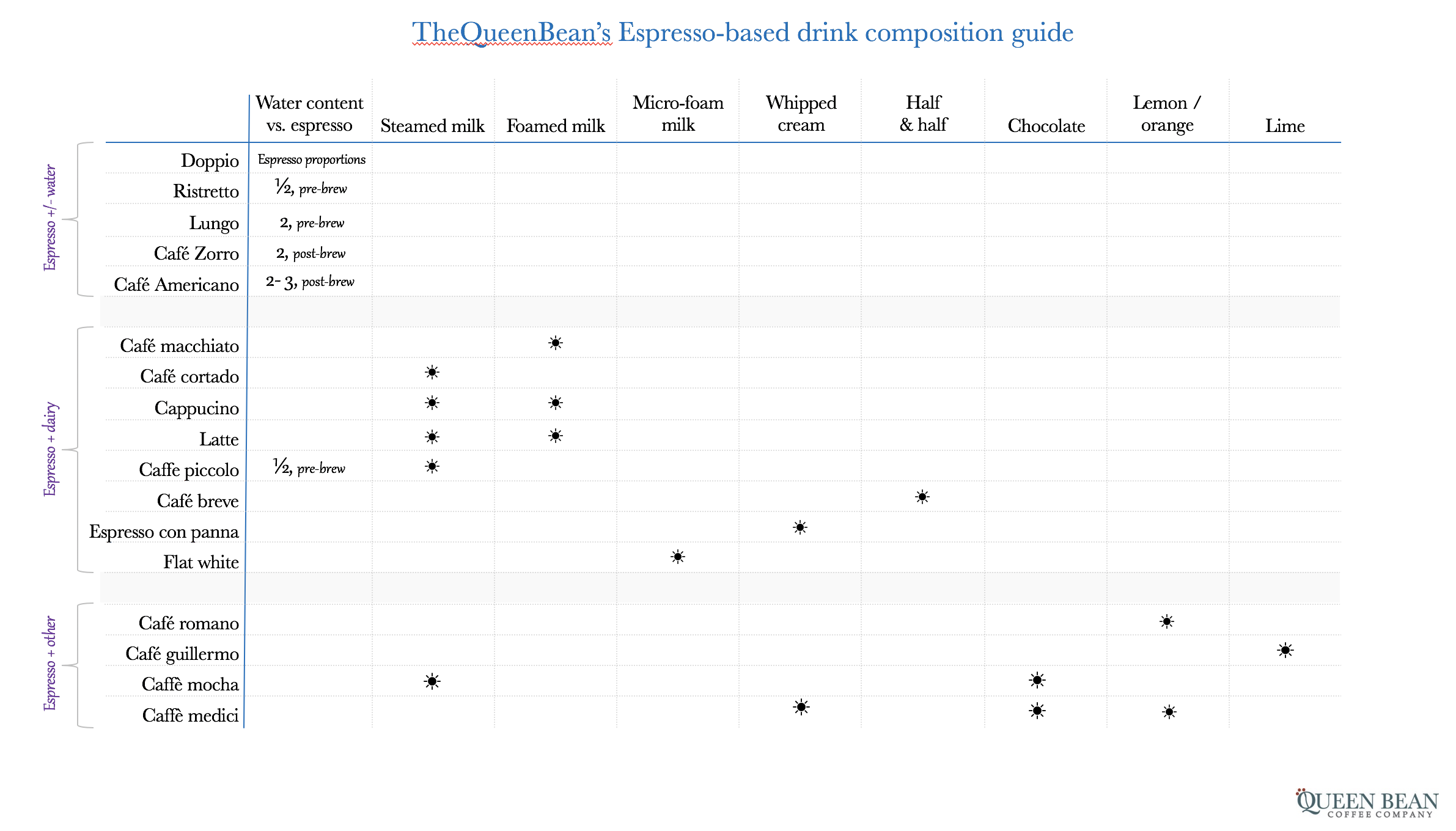 Espresso, that small yet mighty cup of rich, creamy coffee is more than just a drink, it’s the foundation of the espresso-based drink family. While most of us know the difference between a cappuccino and a latte, there are a plethora of unique, delicious espresso-based drinks. From the flat white to the cafe medici, keep reading to learn about the composition of our espresso-based favorites.