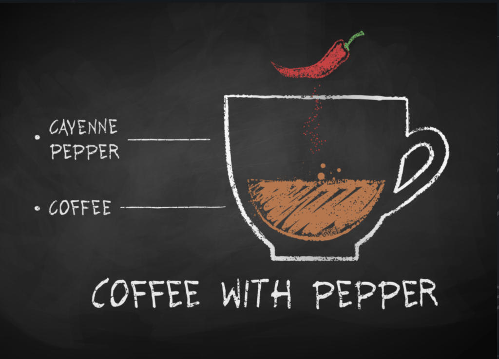 Cayenne pepper, while best known for relieving headaches and improving digestion, also increases circulation, boosts your metabolic rate, reduces hunger, and gives your coffee a warm, spicy kick. Cayenne pepper pairs best with dark, spicy coffees such as Indonesians. Given the intense heat pepper infuses coffee with, we do not recommend adding it to light, bright coffees, such as Africans.