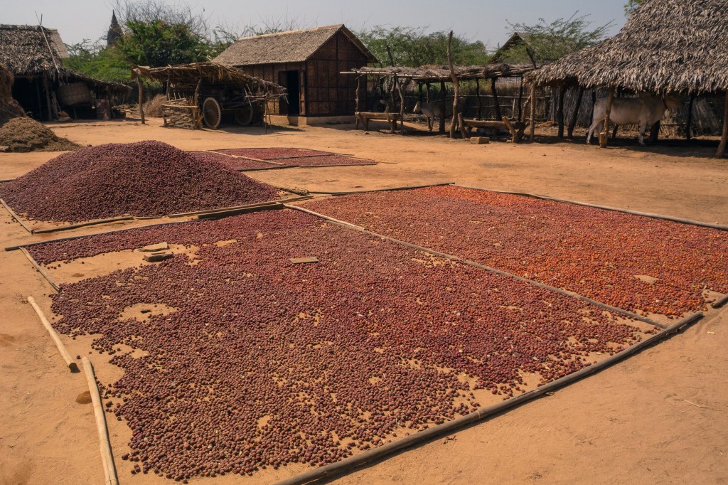 Seventy-five percent of Myanmar’s coffee production is arabica and nearly all of it (~80%) is grown in the northing highlands, on small farms owned and managed by ethnic tribes. These small farm plots mostly measure less than one acre in area and are nurtured and harvested with traditional farming techniques: natural planting, natural pest control, hand-picked harvests, and natural processing. While a few wet processing facilities exist in Myanmar, most of the nation’s coffee is dry processed, meaning the coffee beans dry with the cherry pulp and skin still attached. Dry processing, also known as natural processing, gives Myanmar beans an extraordinarily unique melody of sweet, earth, and spice flavor tones.