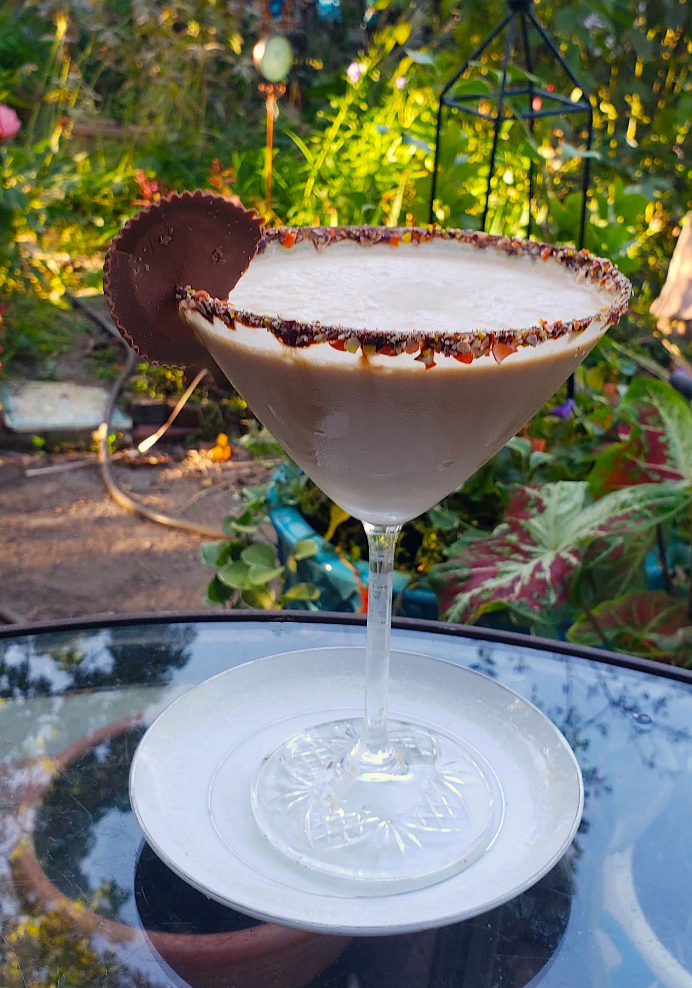 - Chocolate sauce and crushed peanut butter pieces for rimming your glass
