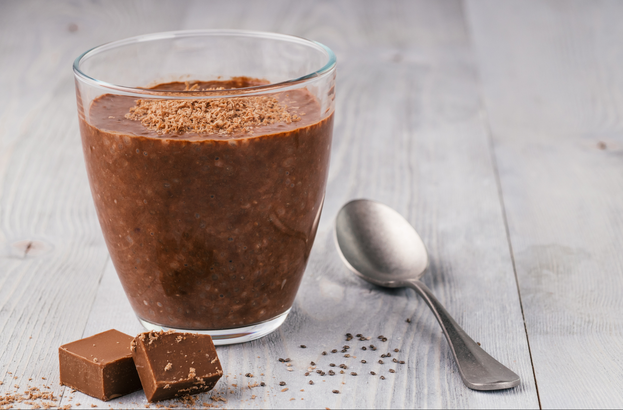 Our final coffee drink isn’t quite a drink but makes a great breakfast, afternoon snack, or dessert, and repurposes your leftover morning coffee; enter coffee chia pudding. Made with cold coffee, chia seeds, maple syrup, milk, vanilla bean, and some chocolate, this delicious pudding is so good you’ll find it hard to believe it’s healthy (but it is!). To make this even healthier, swap the grated chocolate for a tablespoon of unsweetened cocoa powder and top your pudding with nuts, granola, and / or fruit.