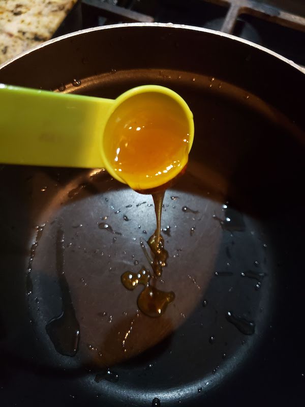 1.) Combine honey, vanilla, water, and corn syrup in a small saucepan and heat until warm stirring constantly.