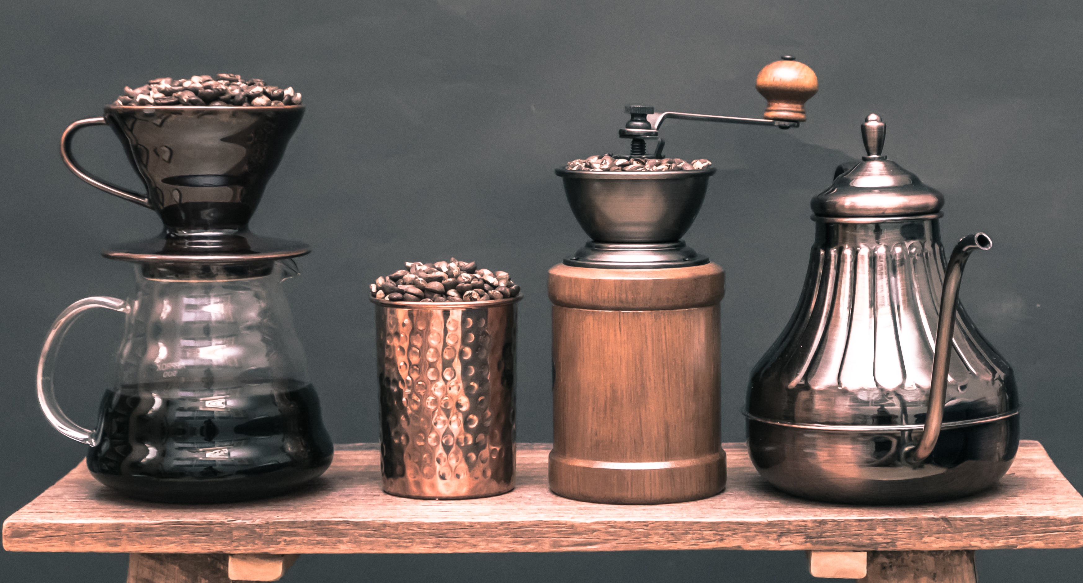 A full brew kit: Complete brew kits include a grinder, a coffee brewer, and any supplementary equipment needed to brew a particular method and / or create a specialty drink.