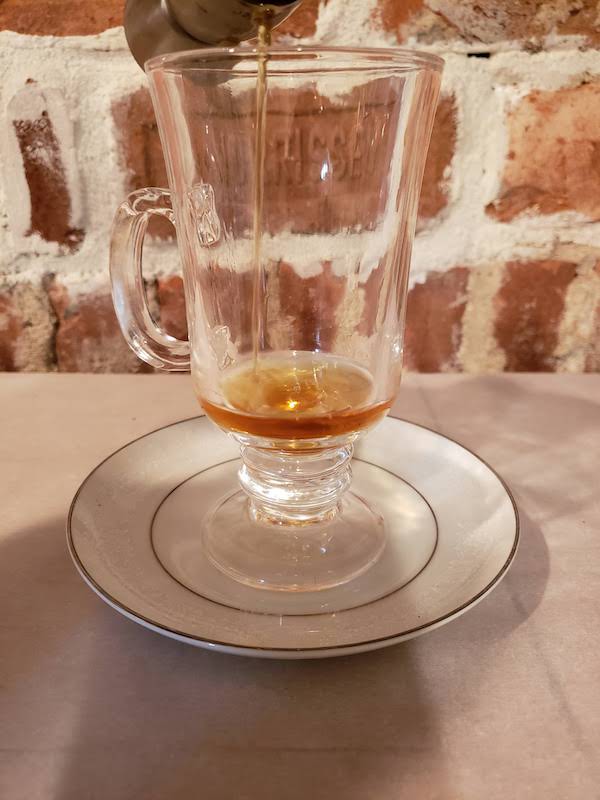 1.) Preheat your mug of choice and combine whisky and maple spice syrup into the cup. If your syrup was in the refrigerator allow it to come to room temperature before using.