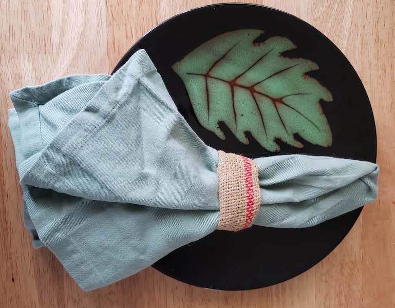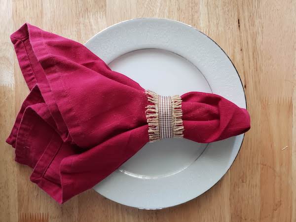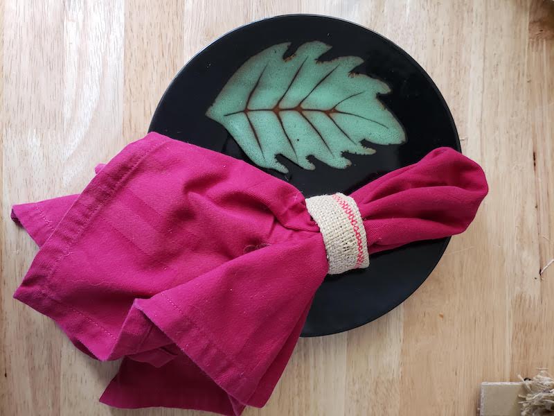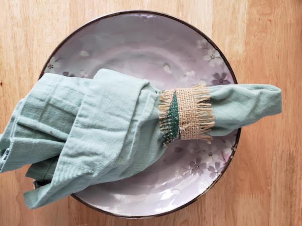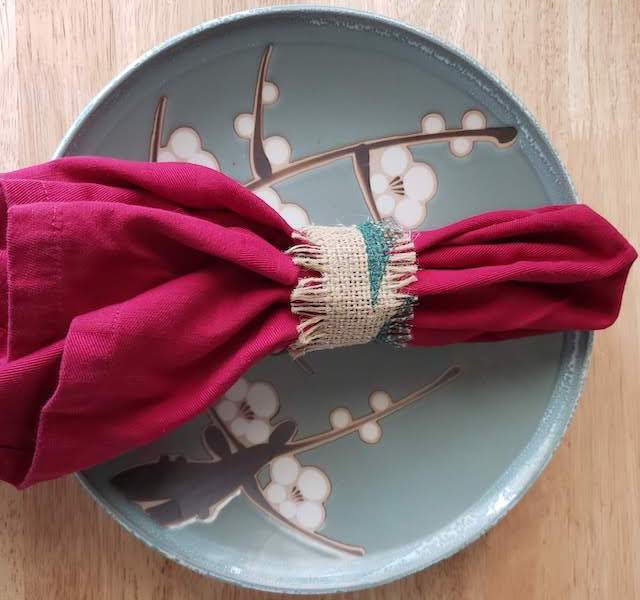 5.) Roll your burlap strip to the desired circumference for your napkin ring — 2 inches is a good diameter.