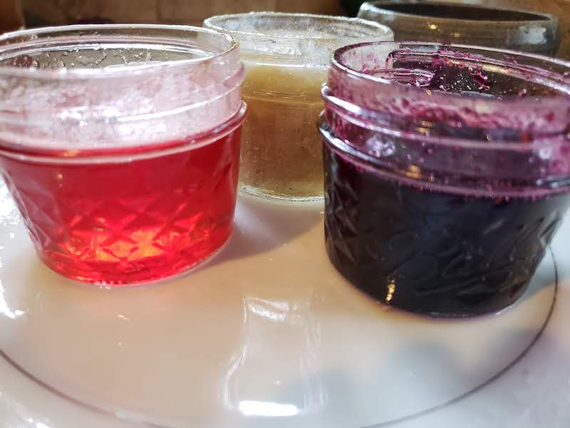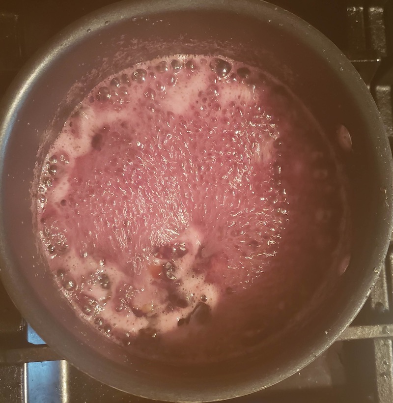 1.) Add two teaspoon of homemade blueberry simple syrup (recipe below) to a glass.