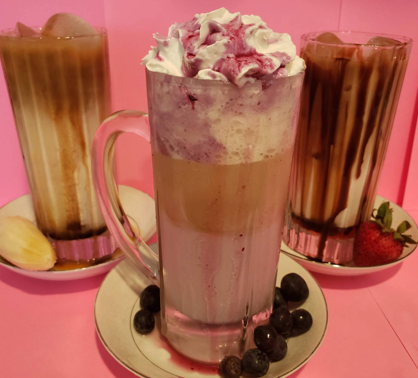 3.) Froth 4 ounces of milk and scoop the foam on top of the blueberry milk.