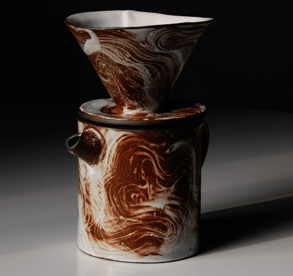 Hand + Fire Ceramic Coffee Dripper Set: This stunning drip brewer is handmade in Oregon by sustainable ceramic artist, Sage Cortez. Dishwasher safe and entrancing in design, this sturdy drip brewer holds 25 ounces of freshly brewed coffee.