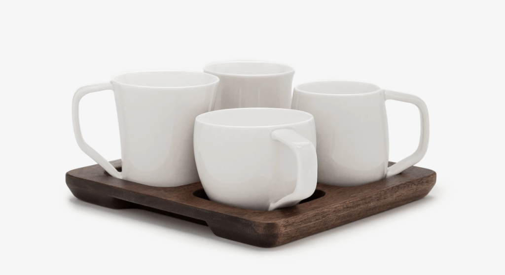 Espro’s Coffee Tasting Cup Set: Espro’s beautiful porcelain cup set merges sensory science principles with elegant design to create a tasting set that transforms the coffee cupping experience. Each cup is crafted to highlight a different taste element of coffee. Tasting the same coffee in all four cups offers cuppers a unique opportunity to experience a vast range of coffee notes and tones via the drinking vessel. This elegant white porcelain tasting set is a fabulous introductory set for those who love to explore, dissect, and truly taste the tonal nuances of each coffee.