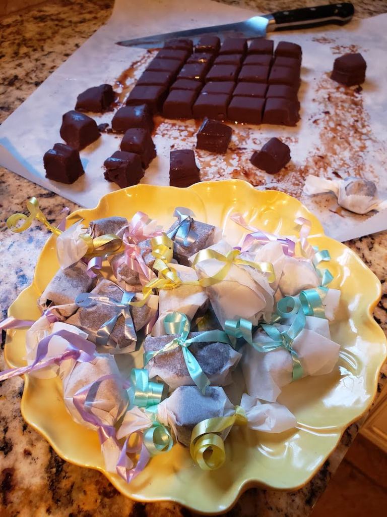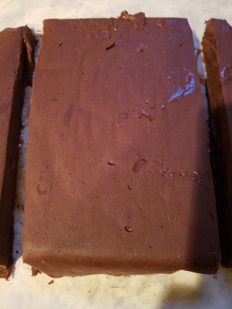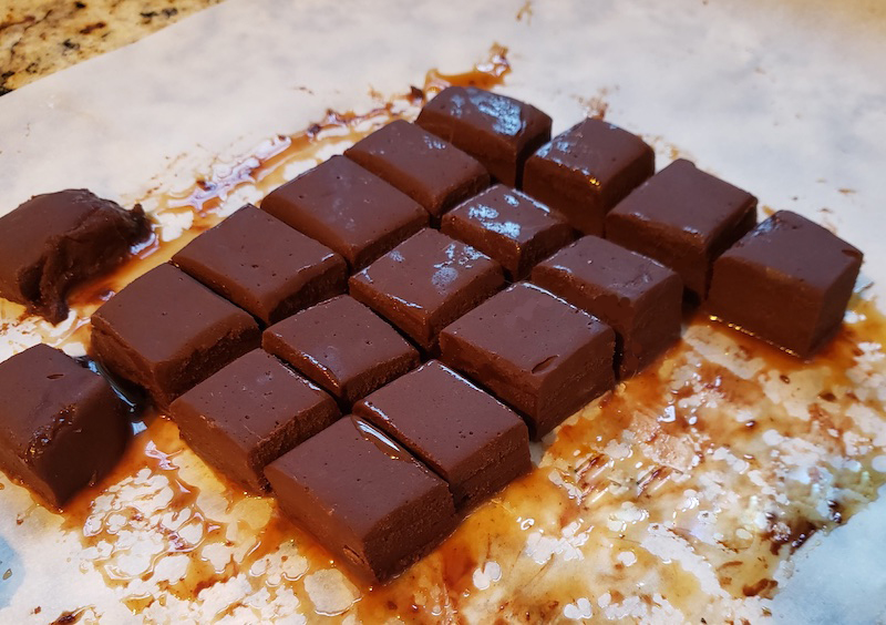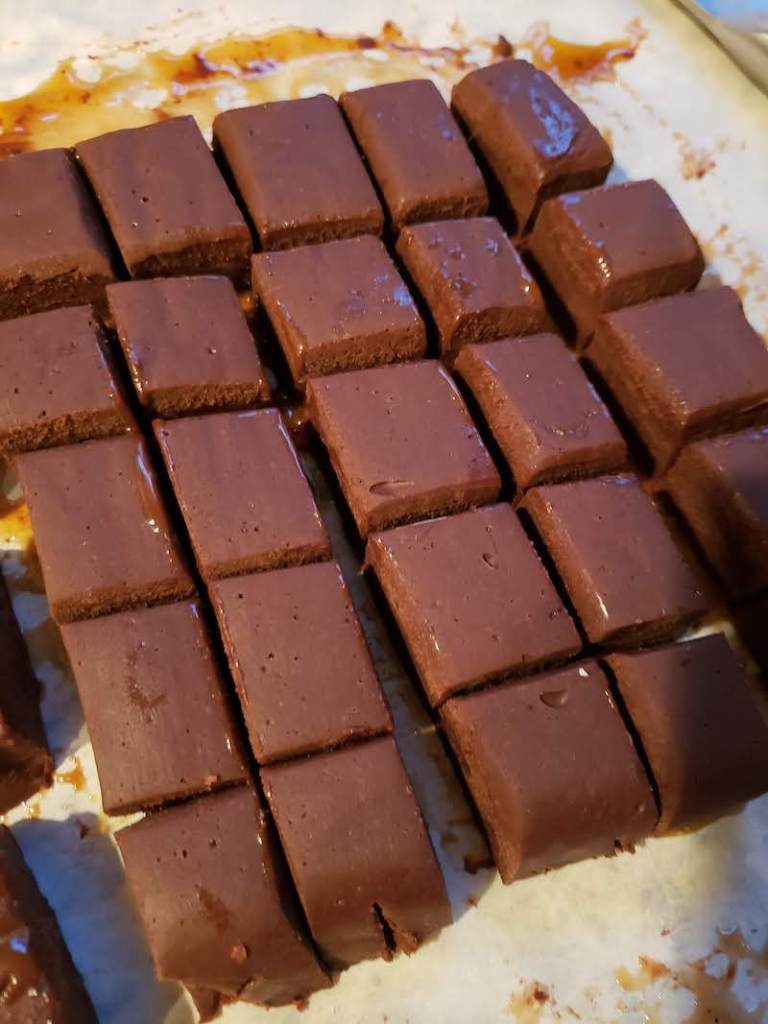 6.) Peel off the waxed paper and cut into mini squares.