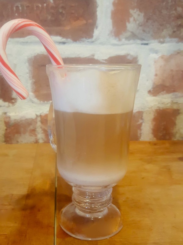 Enjoy some steaming hot coffee layered between warm sweet peppermint milk. Here is an easy layered coffee drink filled with the flavors of the holiday season.
