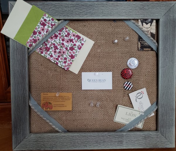 Wondering what to do with your used wine corks? Combine them with coffee burlap sacks and an unused picture frame to create a trendy, up-cycled, shabby-chic style corkboard. This is an easy project, which I completed using items I already owned. The result: a beautiful and functional object, both ready to use and