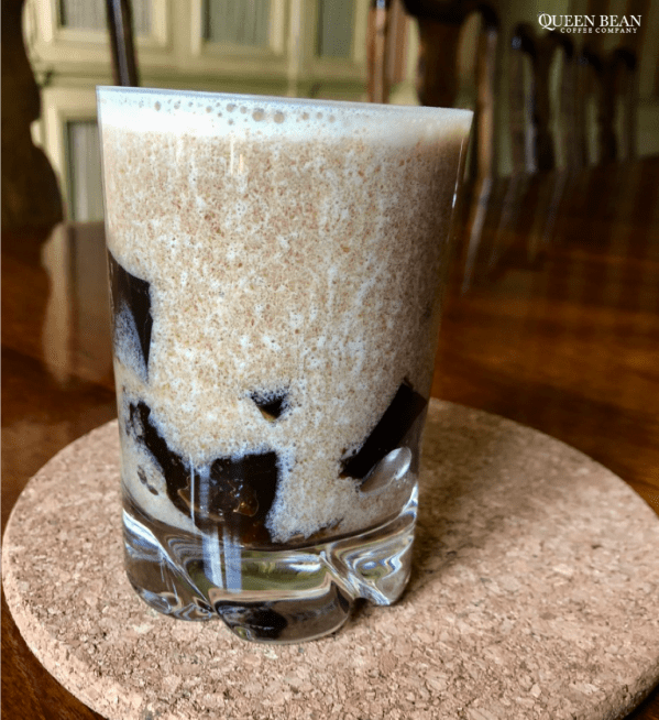 Iced and blended with a touch of apricot and vanilla, this frappe is sure to chill you out on those hot-hot summer days! Today I am using Organically Grown Peru Dark Roast coffee for my frappe. The subtle apricot and vanilla tones of the coffee perfectly compliment the home-made apricot syrup. Best of all this coffee is Smithsonian Certified shade-grown and Bird Friendly. It is also a featured single-origin for August 2019 at TheQueenBean.com. To learn more about this wonderful bean click here. To read up on more coffees that are good for the earth, good for the animals, and good for you, be sure to check out our sustainability series.