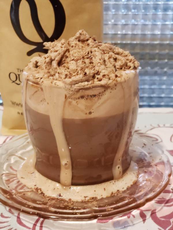 Looking for the perfect Valentine's day latte? Combining coffee with cocoa powder, sweet dark chocolate milk, deliciously decadent chocolate whipped cream, and rich luscious chocolate shavings is the perfect way to satisfy your sweeties sweet tooth and coffee craving at the same time. Enjoy!